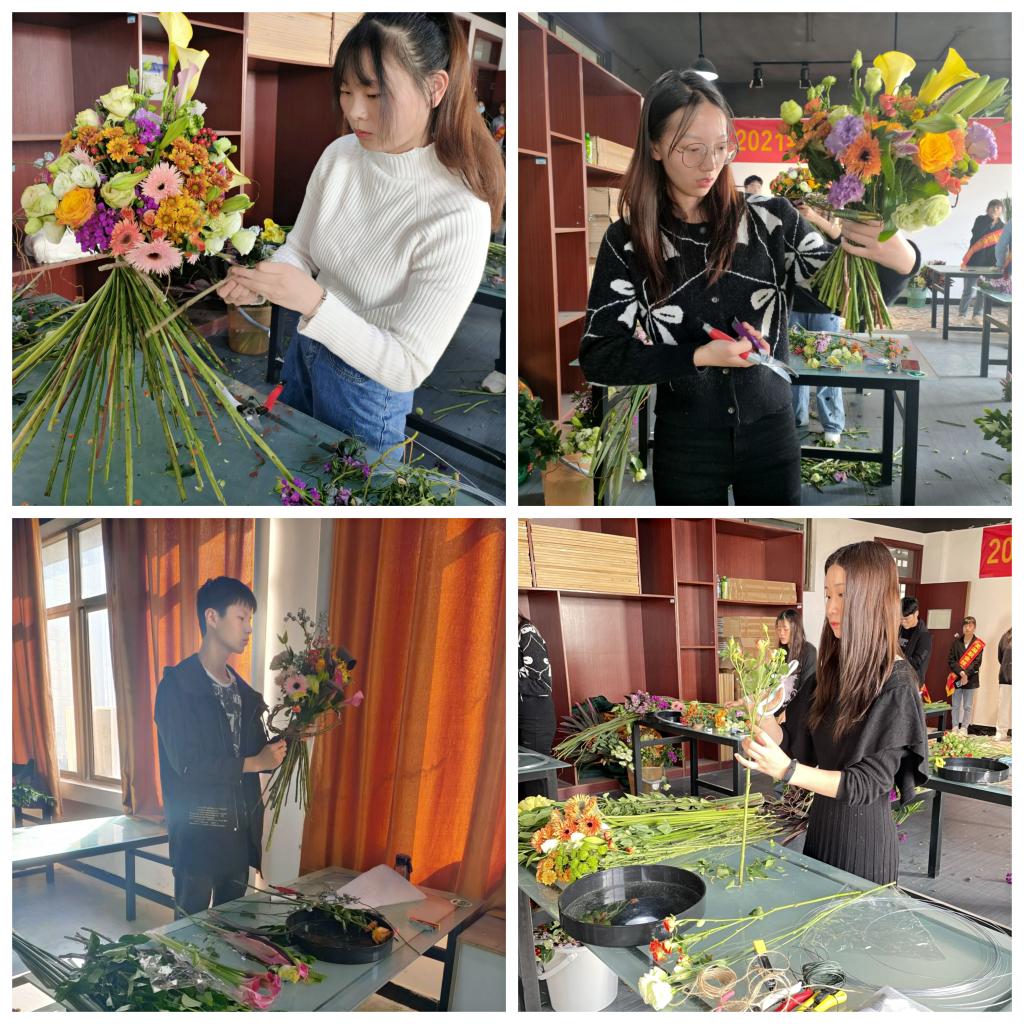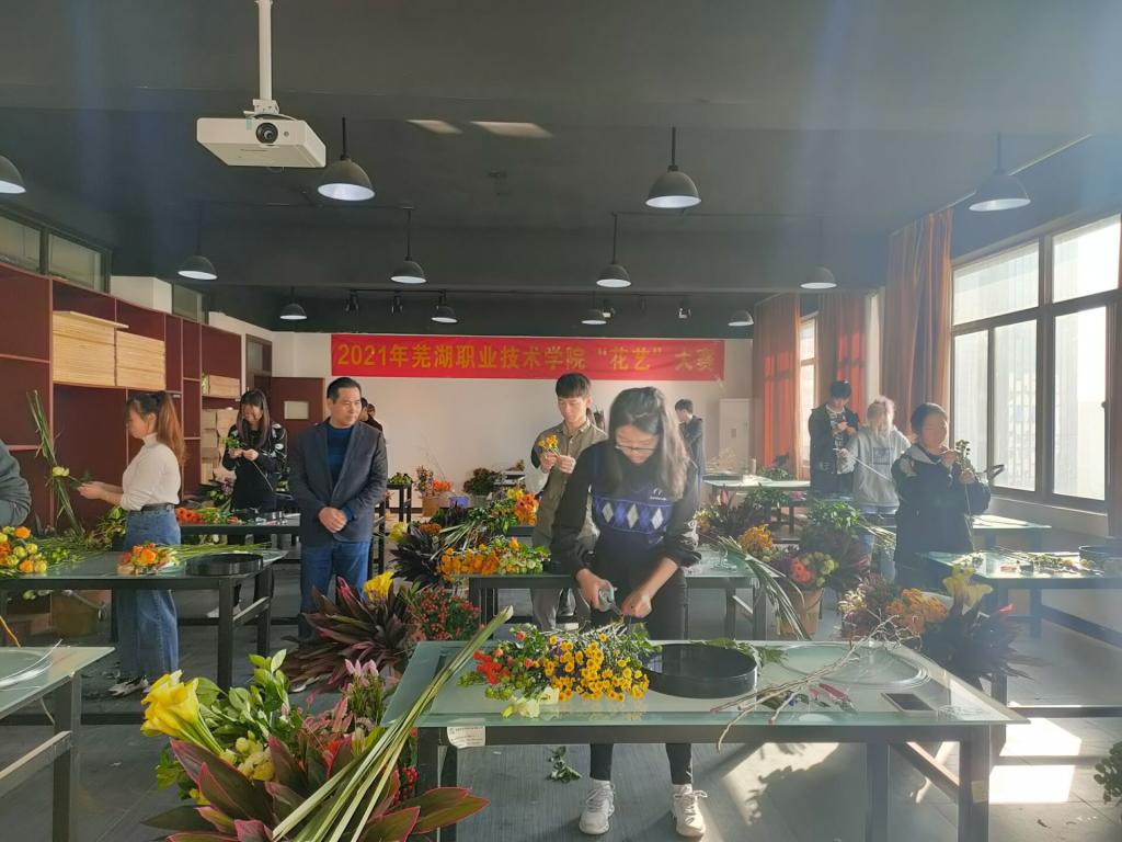10月23日,由园林园艺学院承办的芜湖职业技术学院技能大赛“花艺”项目竞赛在园林园艺学院系楼——精实楼举行,全校共13位同学参加了此次比赛。此次比赛邀请了安徽师范大学涂传林教授、安徽省插花协会周丰老师、宏胜花艺工作室谢宏胜老师等专家担任评委,学院党总支书记朱志国、副书记章素华、副院长徐礼英、学工科长王静、辅导员老师伍卉、夏德美等老师负责现场工作,十多名青年志愿者们在现场提供后勤服务工作。